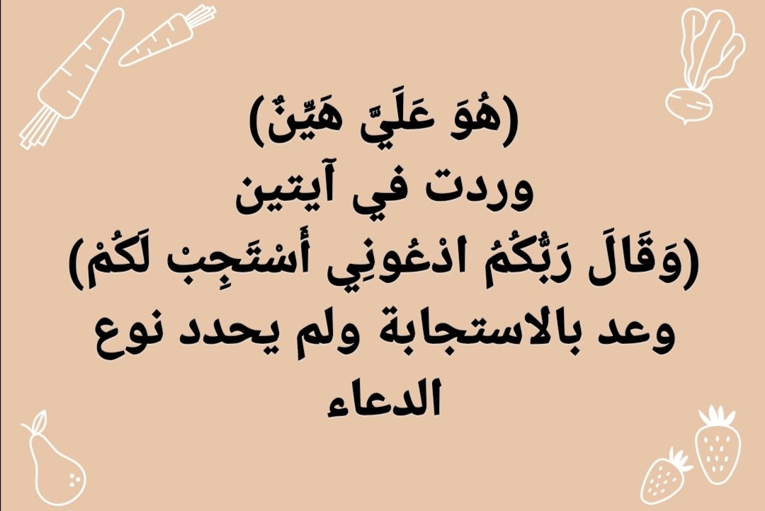 Pagespublic figuremotivational speakerهو علي هين. قَالَ كَذَلِكِ قَالَ رَبُّكِ هُوَ عَلَيَّ هَيِّنٌ وَلِنَجْعَلَهُ آيَةً لِلنَّاسِ وَرَحْمَةً مِّنَّا وَكَانَ أَمْرًا مَّقْضِيًّا. قَالَ كَذَٰلِكِ قَالَ رَبُّكِ هُوَ عَلَيَّ هَيِّنٌ ۖ وَلِنَجْعَلَهُ آيَةً لِلنَّاسِ وَرَحْمَةً مِنَّا ۚ وَكَانَ أَمْرًا مَقْضِيًّا ﴿21﴾. وهذا هو جزءٌ من دعاء القنوت، وقال البعض: