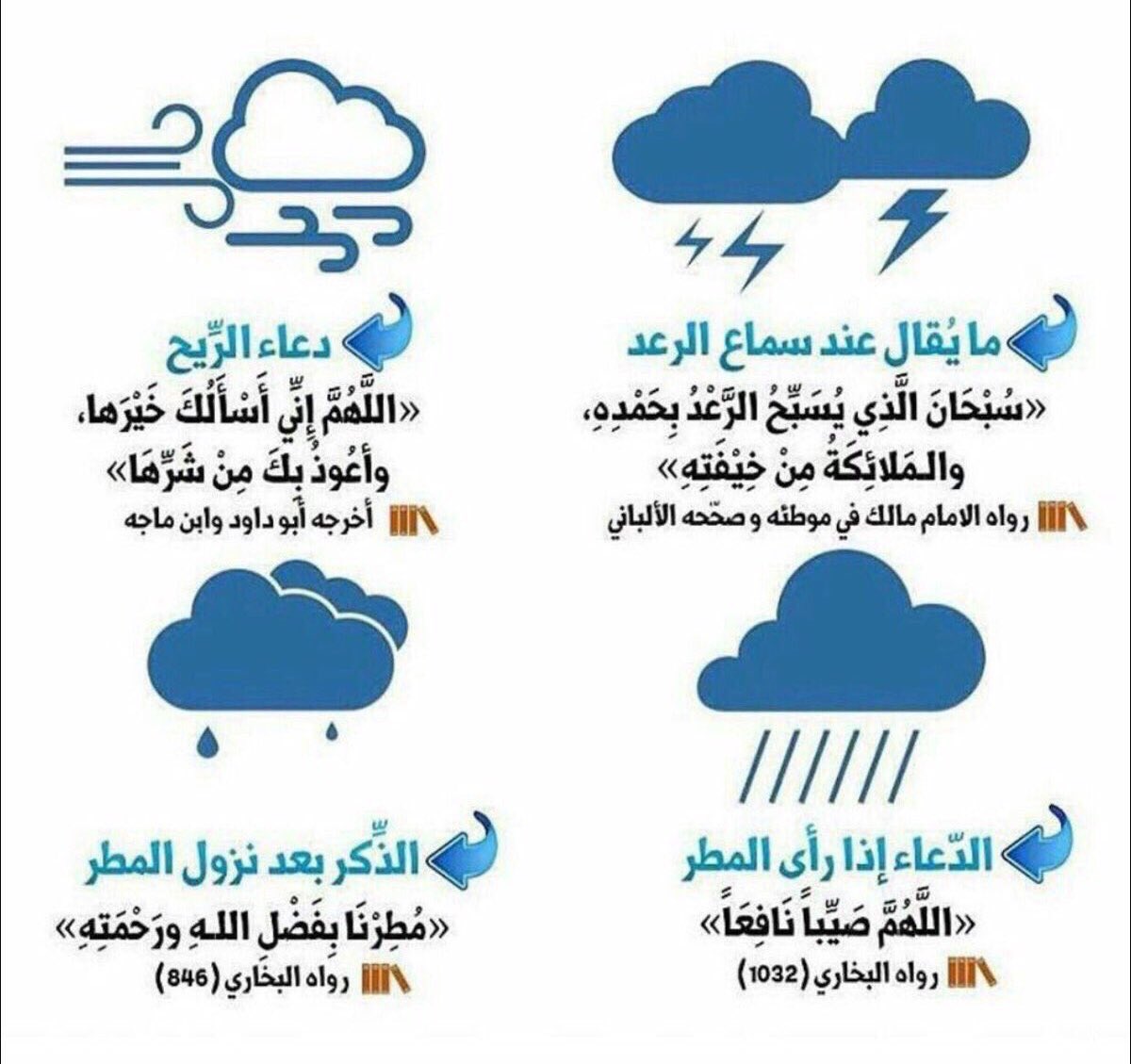 الدعاء إذا زاد المطر اللَّهُمَّ صَيِّبًا نَافِعًا، اللَّهُمَّ صَيِّبًا هَنِيئًا، اللهم لا تقتلنا بغضبك. أما دعاء هبوب الرياح اللهم إني أسألك خيرها وخير ما فيها ، وخير ما أرسلت به ، وأعوذ بك به العباد و تحيي به ما قد مات و ترد به ما قد فات و تنعش به الضعيف و تحيي به الميت من بلادك اللهم سقيا رحمة لا سقيا عذاب و لا هدم و لا. (دعاء المطر) فبنزول المطر تحيا الأرض. اللهم سقيا رحمة، ولا سقيا عذاب، ولا بلاء، ولا هدم، ولا غرق، الّلهم على الظّراب، ومنابت الشجر، اللهم حوالينا ولا علينا.